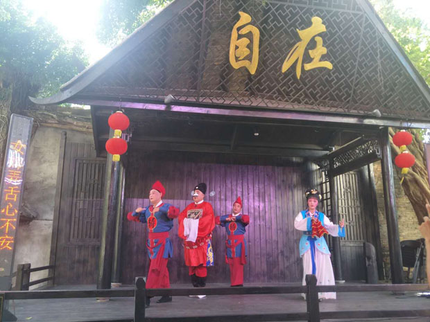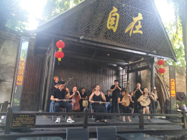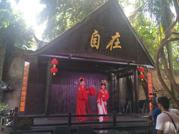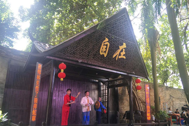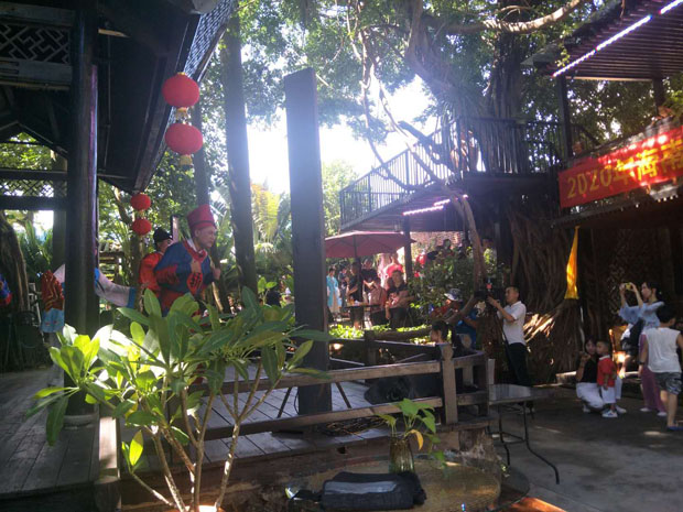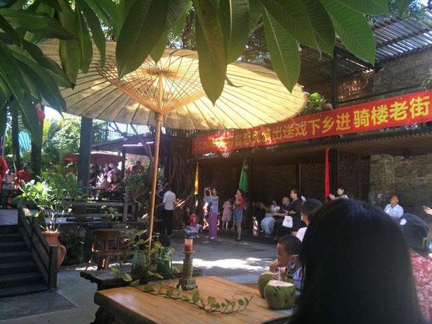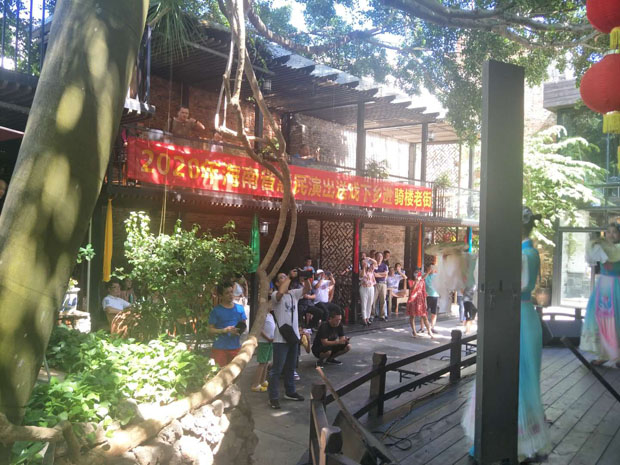 2020年8月8日下午3點,?谑协倓⊙菟囉邢薰驹诤?隍T樓老街(中山路)自在咖啡館后院戲臺演出瓊劇折子戲。這是公司復(fù)工后首次表演,加上時值周末,現(xiàn)場熱鬧非凡。此次演出經(jīng)公司精心策劃安排,不僅有瓊劇經(jīng)典折子戲,還有海南八音、二胡雙人奏等節(jié)目。廣大觀眾一致叫好,熱烈的掌聲給予肯定。